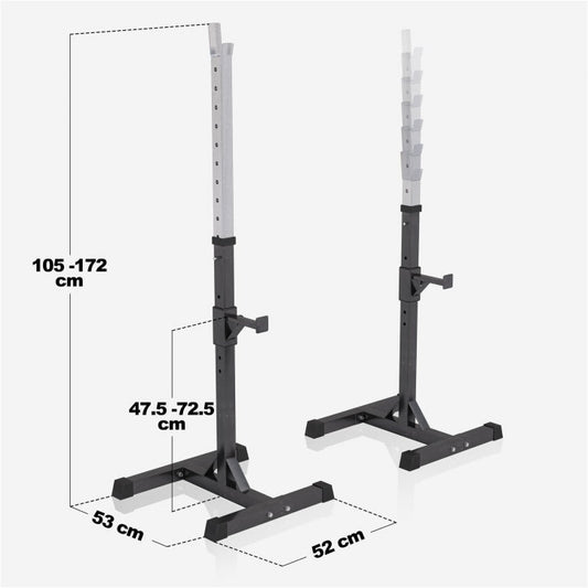 Onze squat racks zijn ontworpen om een breed scala aan oefeningen te ondersteunen. Naast squats, kun je ze gebruiken voor bankdrukken, overhead presses en deadlifts. Dit maakt ze een veelzijdige aanvulling op elke thuisgym of commerciële sportschool. Dankzij de verstelbare schaphoogtes en de robuuste constructie kun je de apparatuur aanpassen aan jouw specifieke trainingsbehoeften en het type oefening dat je wilt uitvoeren.