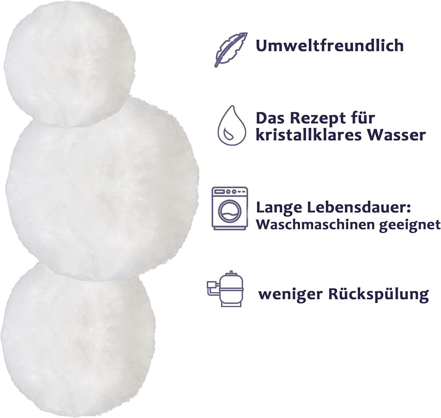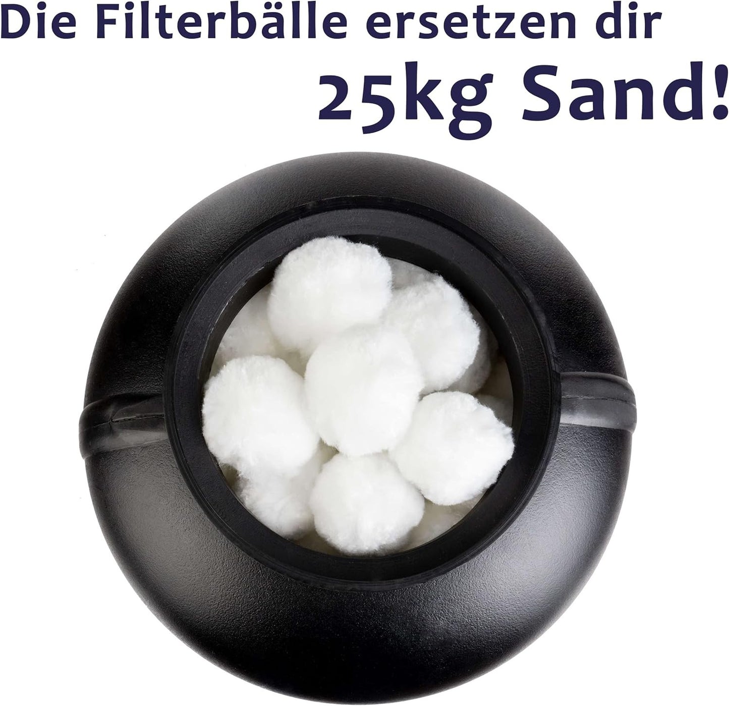 Waarom kiezen voor filterbollen? Onze filterbollen wegen slechts 700 g en zijn eenvoudig te hanteren in vergelijking met de zware zakken filterzand. Ze filteren zelfs de kleinste vuildeeltjes tot 1 micron uit, wat zorgt voor kraakhelder water. Bovendien verwijderen ze ook vetten uit het water, wat bijdraagt aan een schoner zwembad.
