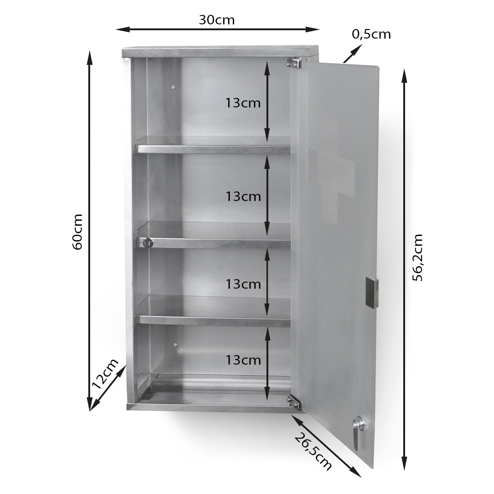 KENMERKEN: Medicijnkastje voor eerste hulp, gemaakt van staal, afmetingen 60 x 30 x 12 cm.