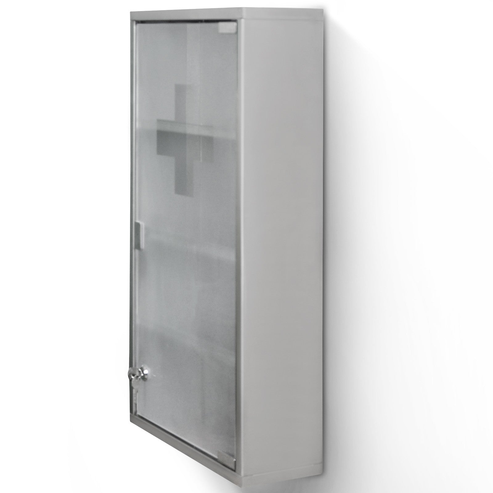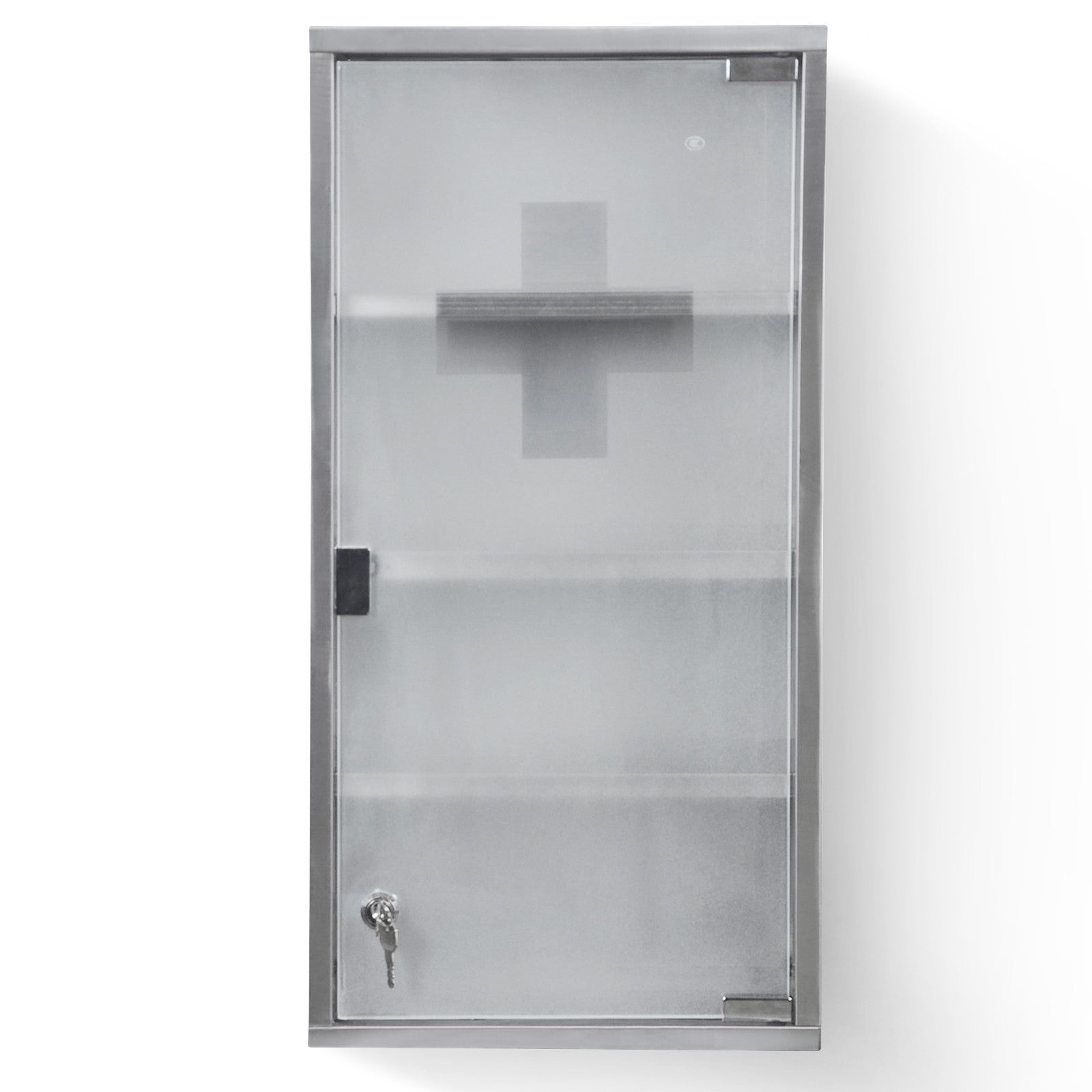 Bewaar uw medicijnen veilig achter slot en grendel met deze medicijnkast XL.ALGEMENE INFORMATIE: Medicijnenkast met glazen deur, 4 vakken en vergrendeling.