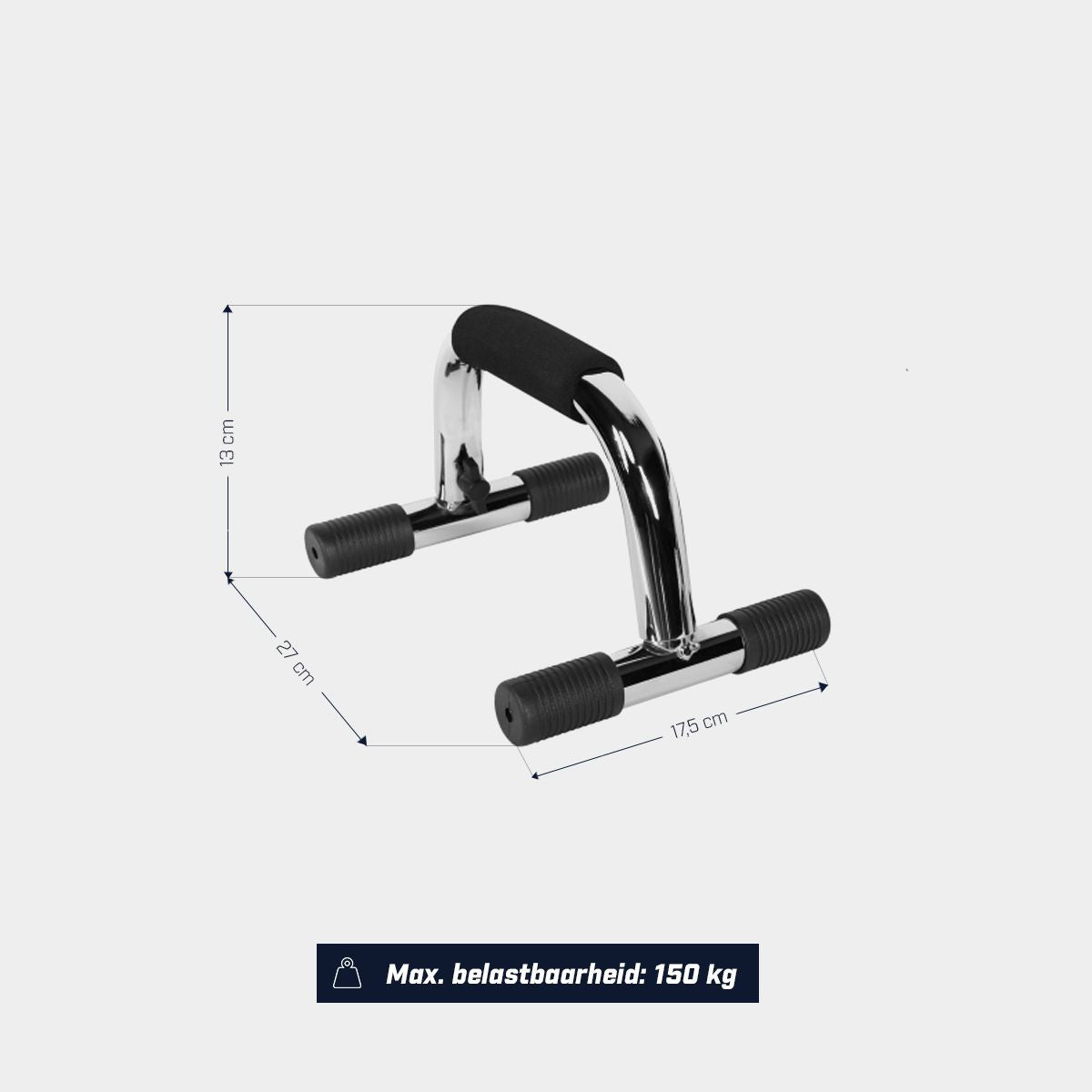 Push-ups zijn een zeer populaire oefening en ook perfect om je persoonlijke conditie te testen. Maar of je nu je persoonlijke push-up record wilt verbreken of dat krachttoename je hoofddoel is: De chromen push-up grips van Gorilla Sports bieden je een comfortabele handpositie voor een comfortabele training. De opdruksteunen zijn verchroomd en voorzien van antislipvoetjes. Het greepgedeelte is bekleed met anti-slip schuim.