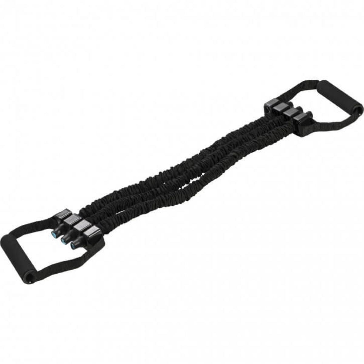 Met de fitness expander voor de borst heb je een echte evergreen onder de fitnessapparatuur bij de hand. Dankzij talloze en veelzijdige oefeningen is het gemakkelijk om het bovenlichaam te trainen. De drie weerstandsbanden zijn verwijderbaar.