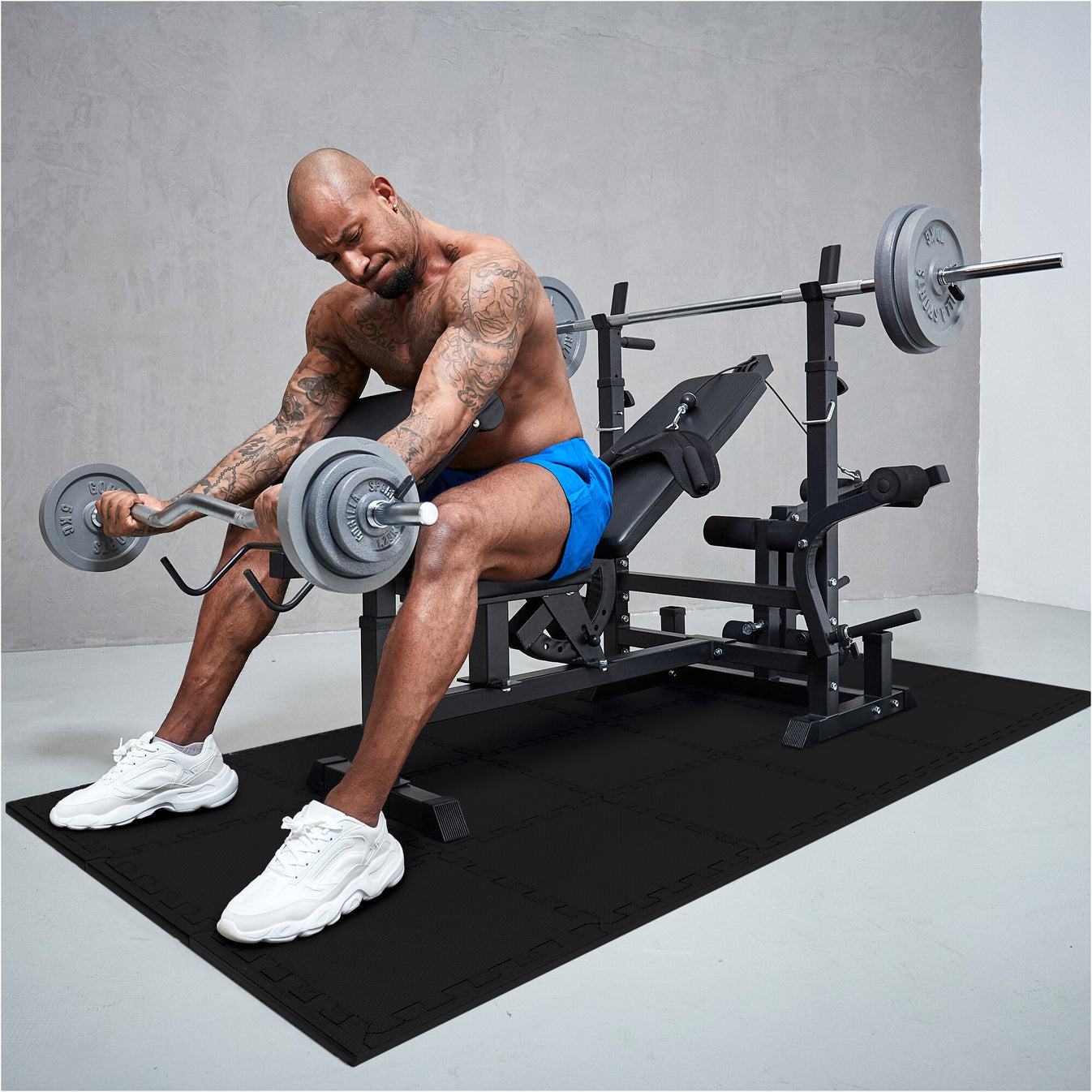 De vloerbeschermingsmatten van Gorilla Sports bieden een optimale bescherming voor je vloer tegen beschadigingen en dempen geluiden tijdens je trainingen. Met hun in elkaar grijpend ontwerp en duurzame materialen zijn deze matten perfect voor je homegym, fitnessapparatuur of speelruimte. Deze set van 18 matten en 18 eindstukken biedt veelzijdige configuratiemogelijkheden, zodat je eenvoudig de perfecte opstelling kunt creëren.
