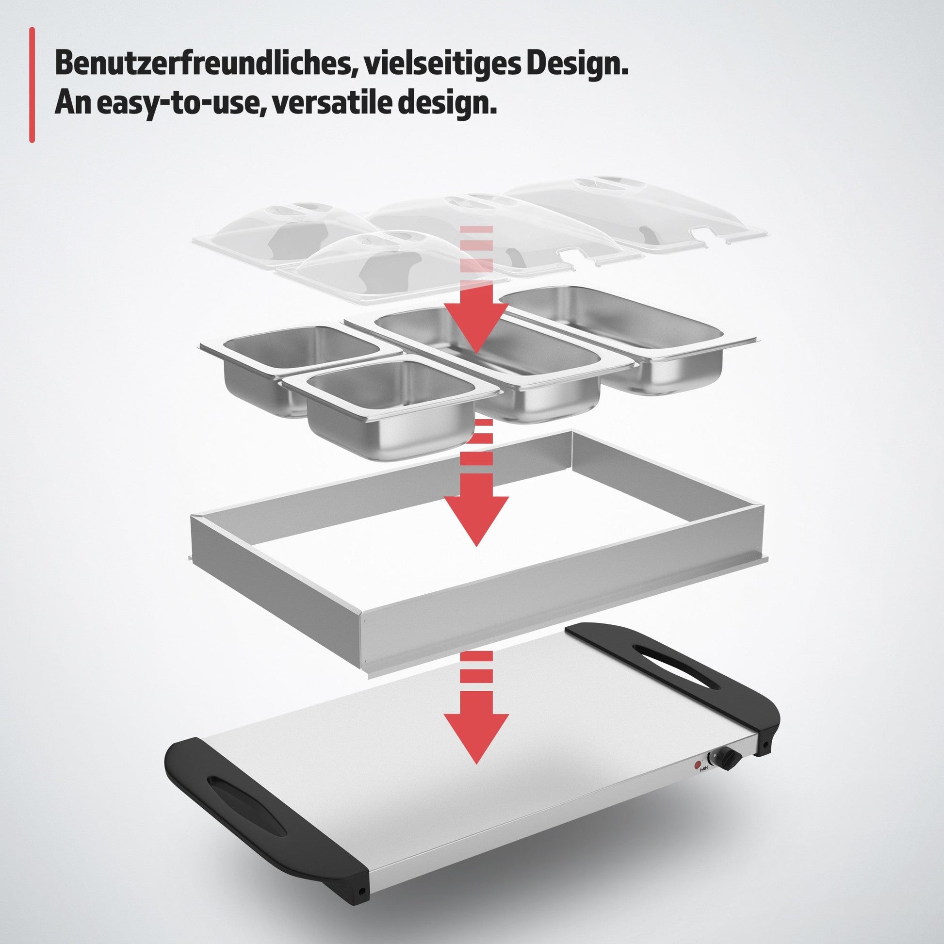 Met één of meerdere buffetwarmers blijven de gastronomische lekkernijen die u bereidt langer warm. De buffetverwarmers zijn een zeer praktische uitvinding - of het nu bij grote evenementen, privéverjaardagsfeestjes of gewoon als uw partner laat thuiskomt van zijn werk - ze zijn de ideale oplossing voor het serveren van warme gerechten.