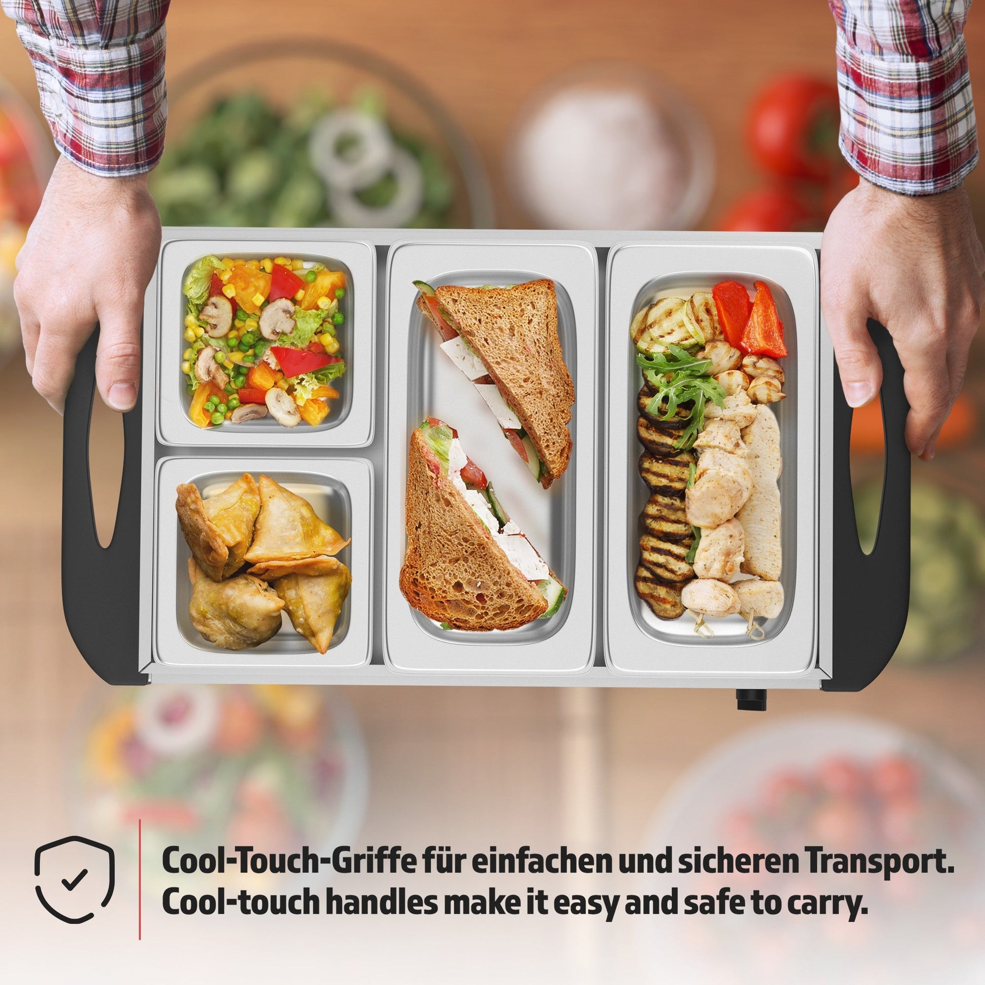- Met drietraps temperatuurregeling — Je eten blijft warm van 40 tot 85 °C
